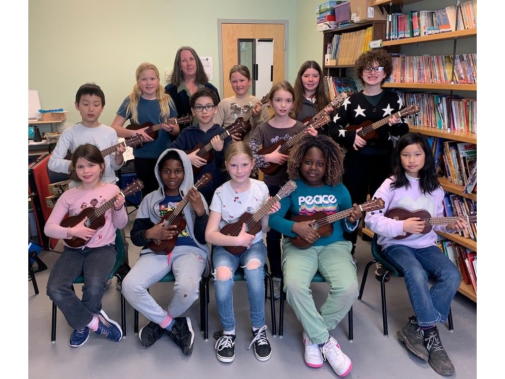 One of the most beloved activities at the elementary school is undoubtedly the Ukulele Club. Mary Rafuse initiated this club about three years back. Besides her role as the school secretary, she also takes on the responsibilities of a music teacher. According to her, she finds great joy in interacting with the students.