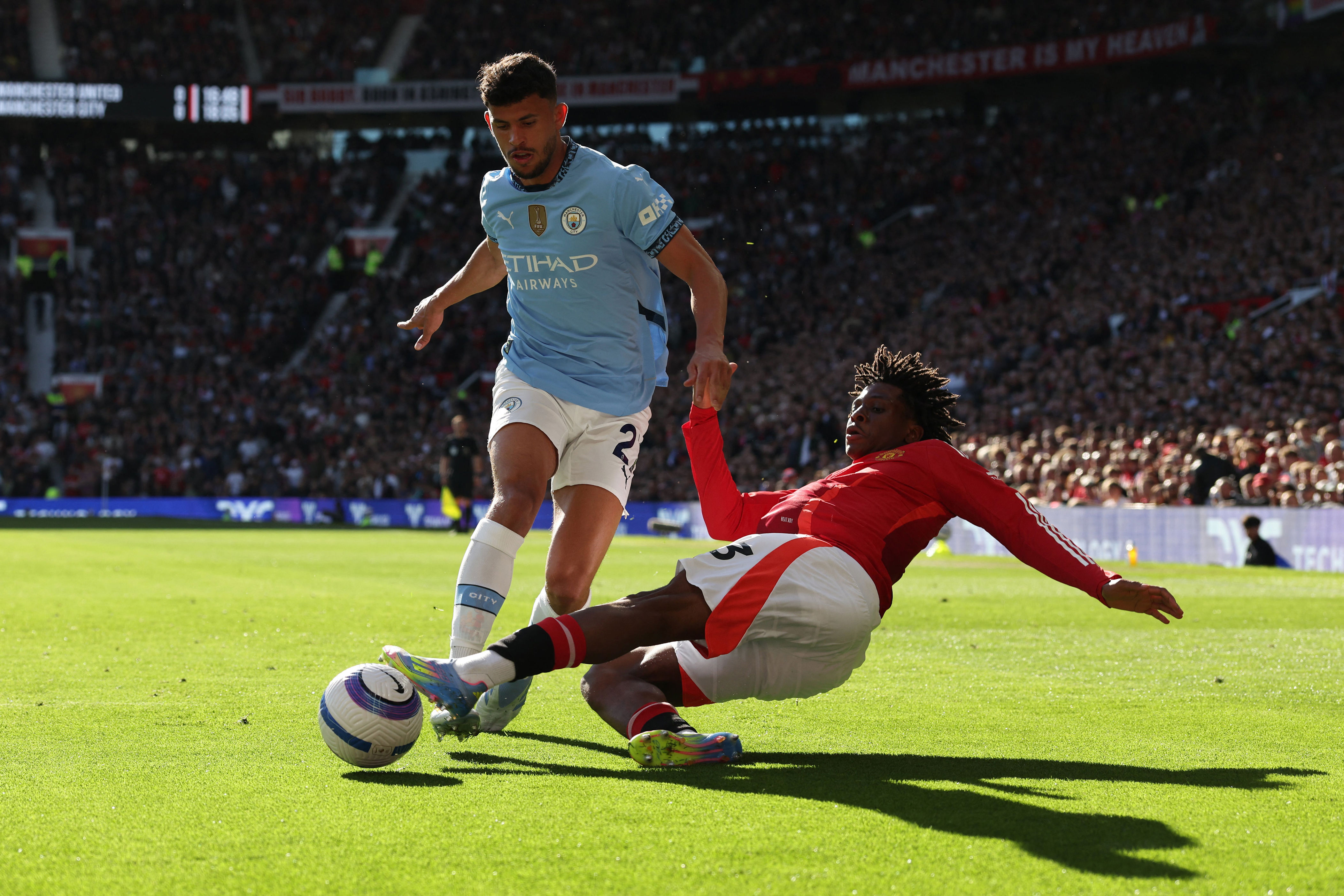 "We weren't in an optimal spot to cause them further damage," Guardiola expressed regretfully. Due to the captain being included, Omar Marmoush was moved out wide and seemed underutilized on the left flank; United restricted his space, preventing him from utilizing his speed effectively, whereas City didn’t provide enough support for him. Nonetheless, Marmoush managed to draw André Onan'a top saves with both a well-struck free-kick and a powerful drive. In contrast, Phil Foden’s struggles persisted: despite having scored six times against United over the last three seasons, he missed what could have been his prime opportunity when he stumbled and weakly sent a shot off-target. was the target of some unsavory slogans Guardiola stated: "There’s a lack of honesty, elegance, and they ought to feel embarrassed about it; however, this occurs all over."